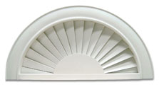 Smart Arch™ The better sunburst arch for 2004 and beyond: The Smart Arch™ sunburst arch is a new product from Aveno that can be used with any window covering - wood anf faux wood blinds, shutters, shades - even draperies! The Smart Arch™ provides a great solution to covering any hard-to-find arched window. This beautiful, durable foam PVC product is built to include several deluxe features: louvers mounted with individual springloaded tension screws, a 2 1/2" decorative molding frame, and an incredible louver thickness of 1/4" ... just to mention a few. Aveno offers the Smart Arch™ sunburst arch in two designer neutrals: 400 White and 402 Antique White. Our available selection has expanded!