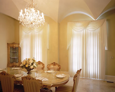 Vertilusion™ Vertilusion™ shadings merge the elegance of fabric draperies with the privacy and light control of a vertical blind. Sensuous, seamless European sheer fabrics float over PVC vanes to create a window covering that encompasses both luxury and technology. Combine Vertilusion™ offers a more private alternative to draperies, and a definitively richer look than vertical blinds alone. Vertilusion™ shadings are designed with the option to order a matching swap and jabot valance for a truly sophisticated custom finish.